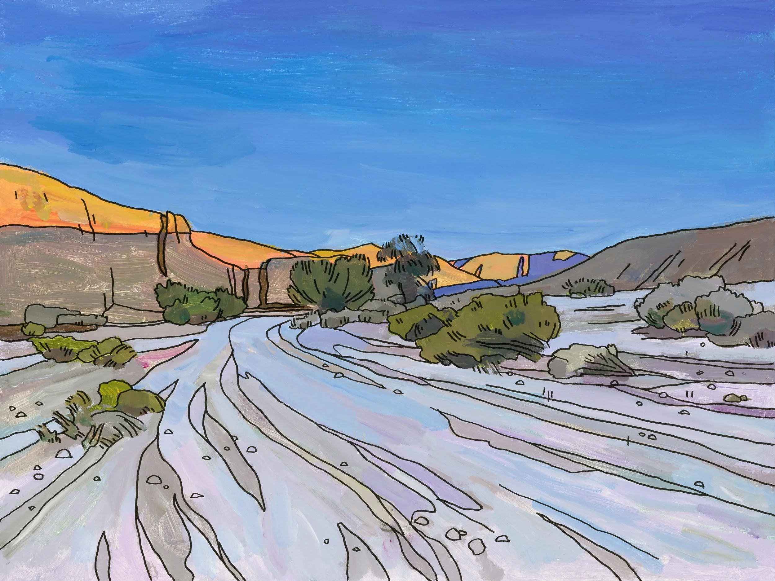 Growing up in California, Merrell was introduced to the fundamentals of painting and working outdoors at an early age. After he moved to the East Coast to attend The University of the Arts in Philadelphia, being exposed to European and modern art broadened Merrell’s artistic influences and perception. His strong foundation in landscape painting and illustration continued when he transferred to ArtCenter College of Design in Pasadena, while his newfound interest in modern art shaped his path forward as a painter and helped him home in on his own unique approach.