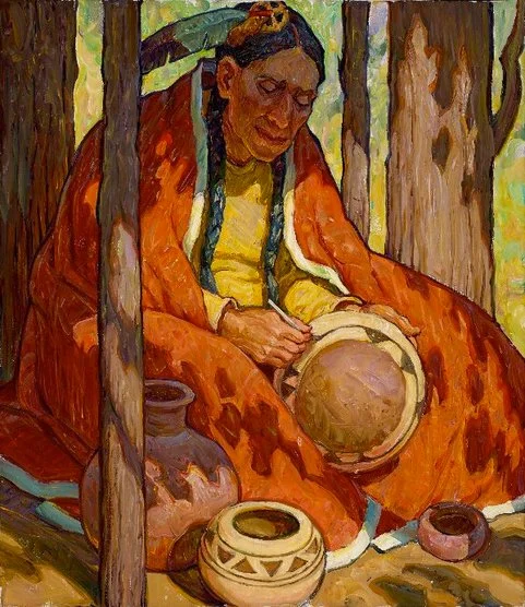 E.I. Couse (1866 - 1936) “Indian by a Stream” Oil 9” x 12” (SOLD)