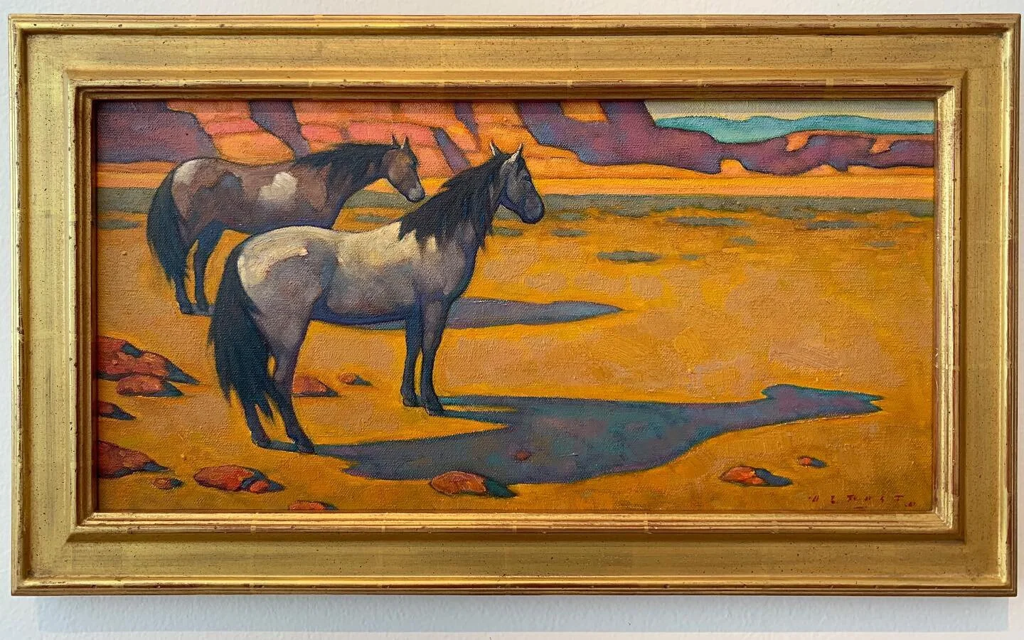 Howard Post $5,500 10"x20" "Red Rocks and Mustangs" Oil